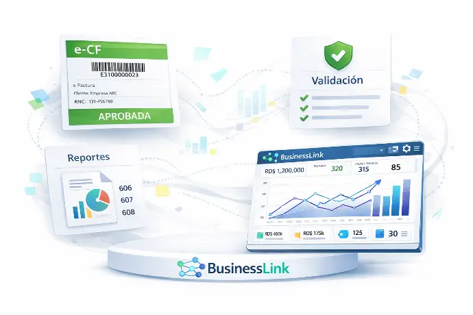 BusinessLink te ayuda a emitir, validar y gestionar tus e-CF con una solución diseñada para empresas dominicanas. Automatiza procesos, integra tu operación con tu ERP y mantén tus documentos disponibles de forma segura para auditorías y consultas